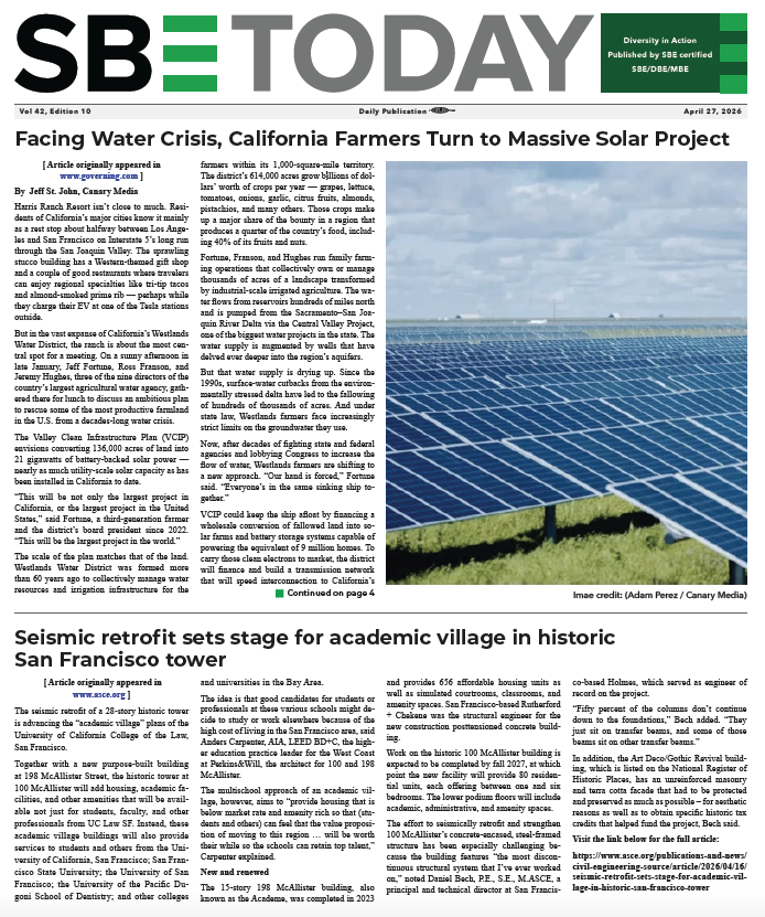 Being an industry leading publication with a strong online presence, SBE helps you reach the certified, qualified subs, suppliers and vendors you need for your next project.